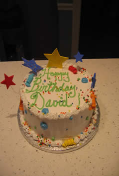 2 layer 8" cake with stars and squiggles,